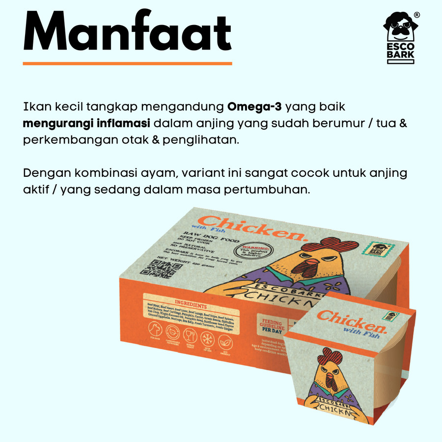 Escobark Chicken Fish Raw Dog Food Makanan Basah Anjing (Ayam Ikan) – 500 gram