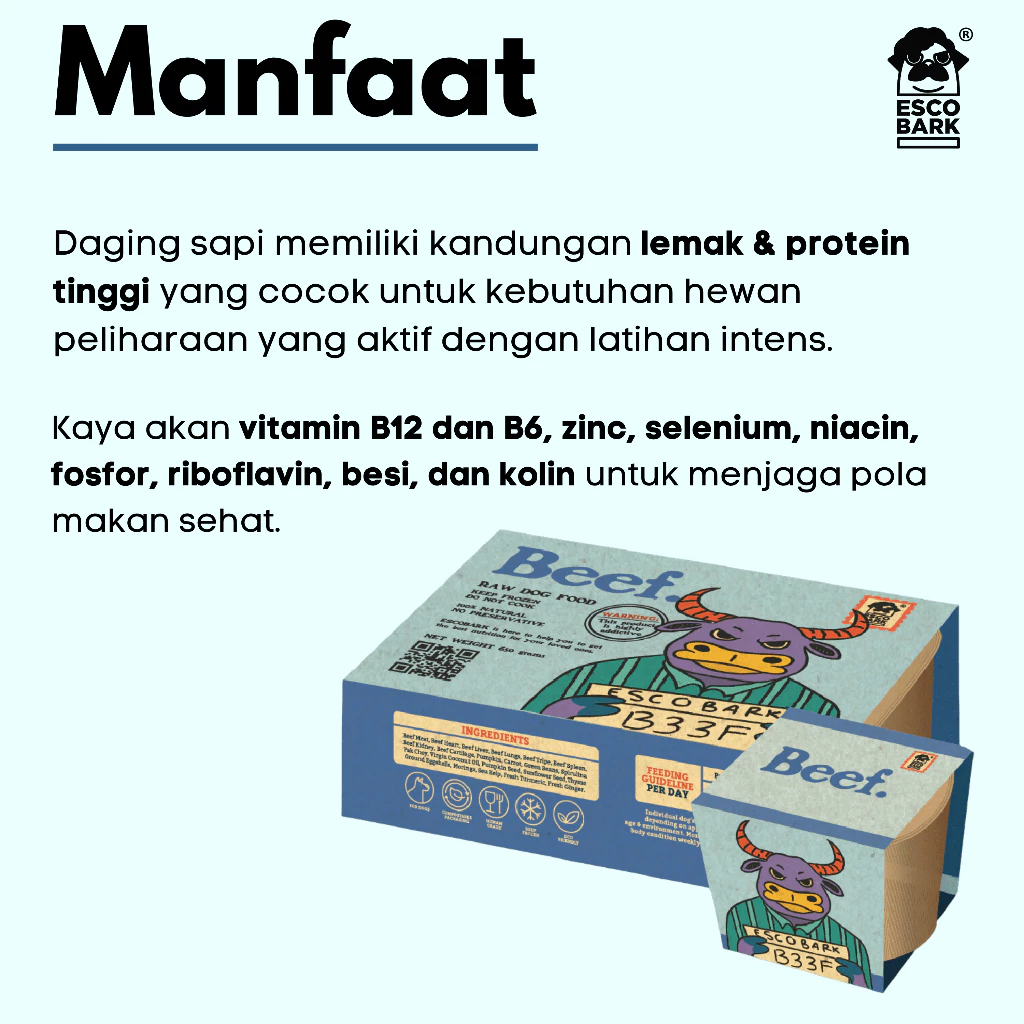 Escobark Complete Beef Raw Dog Food / Makanan Basah Anjing (Sapi) – 100 gram